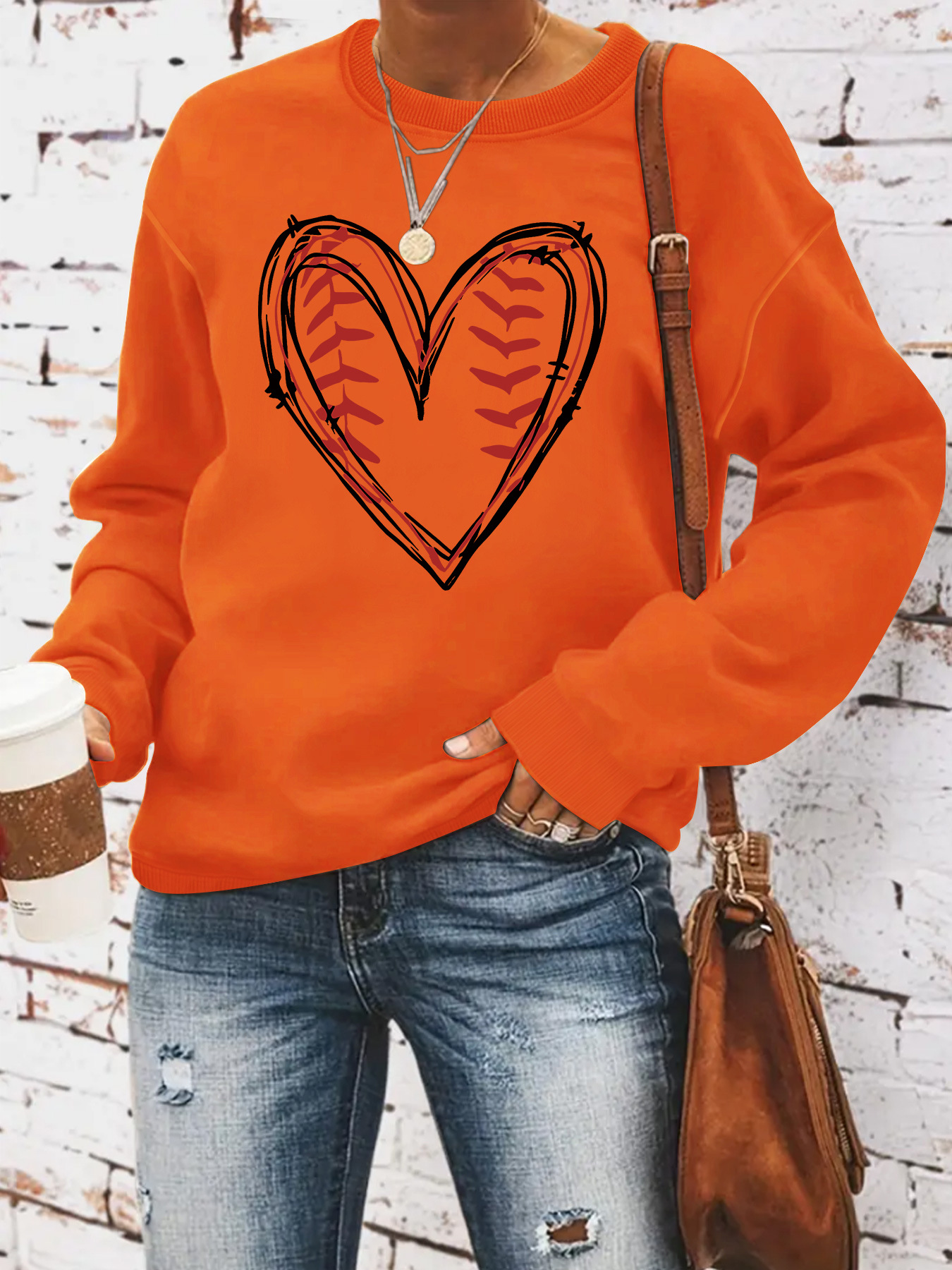 Heart printed casual long sleeved sweatshirt