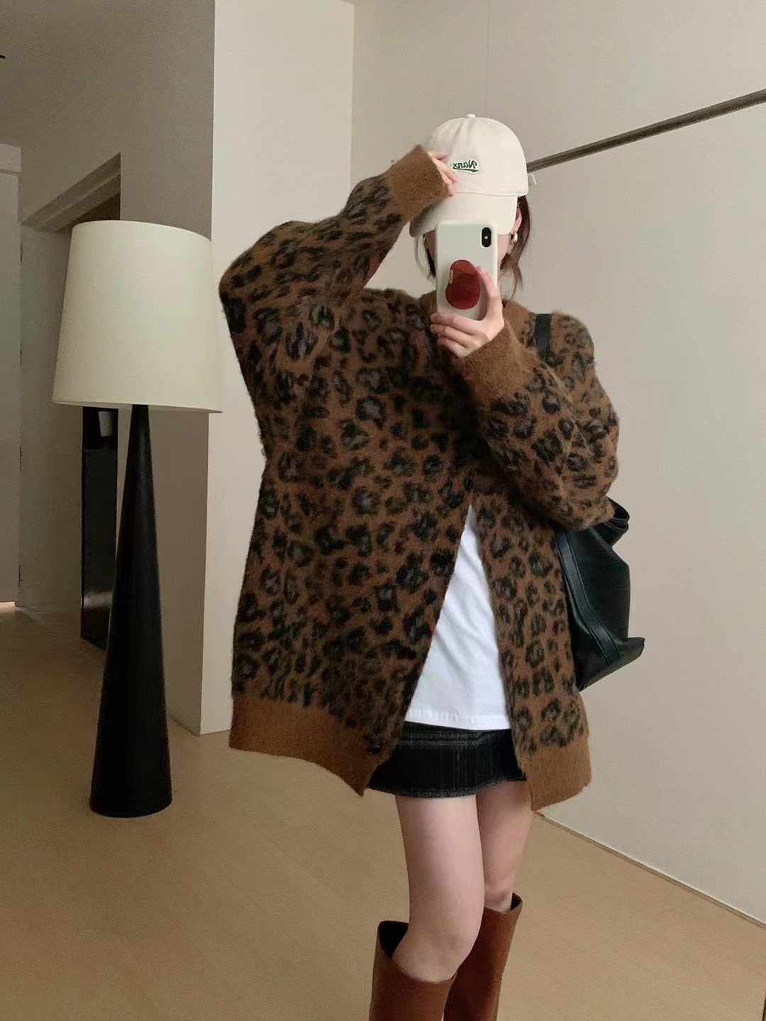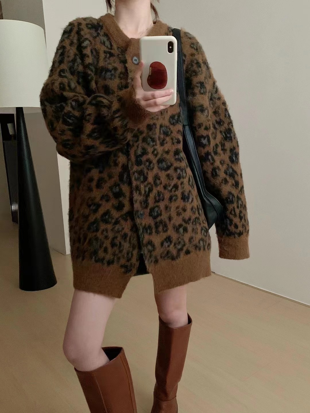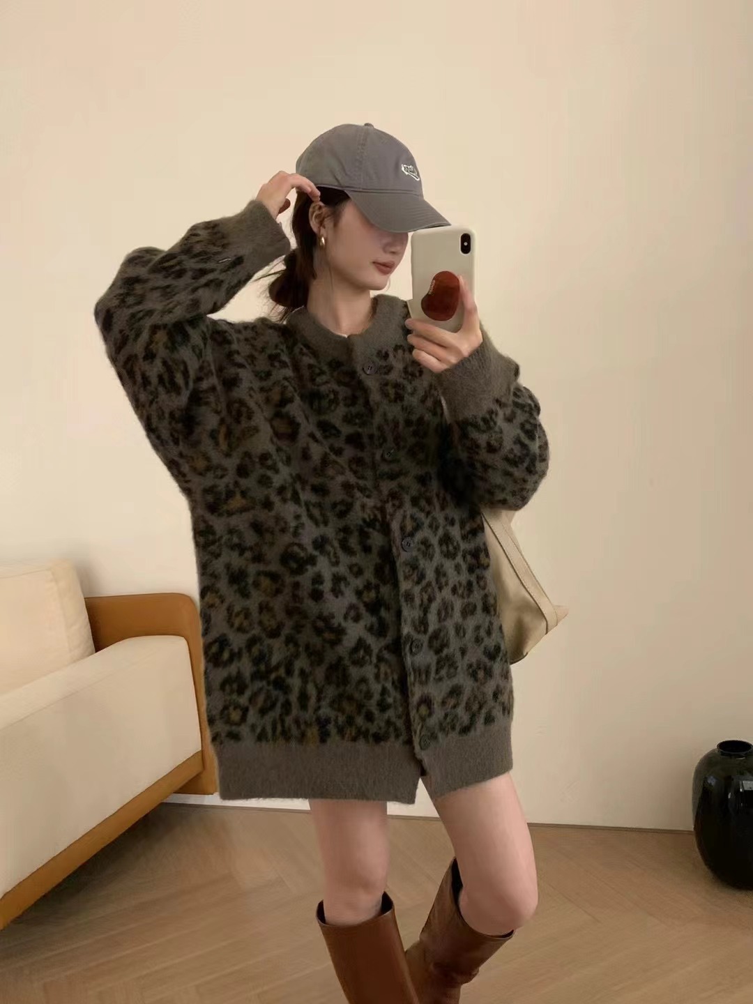Leopard-print Sweater Coat for Women a Knitted Top with Elegant and Youthful Style