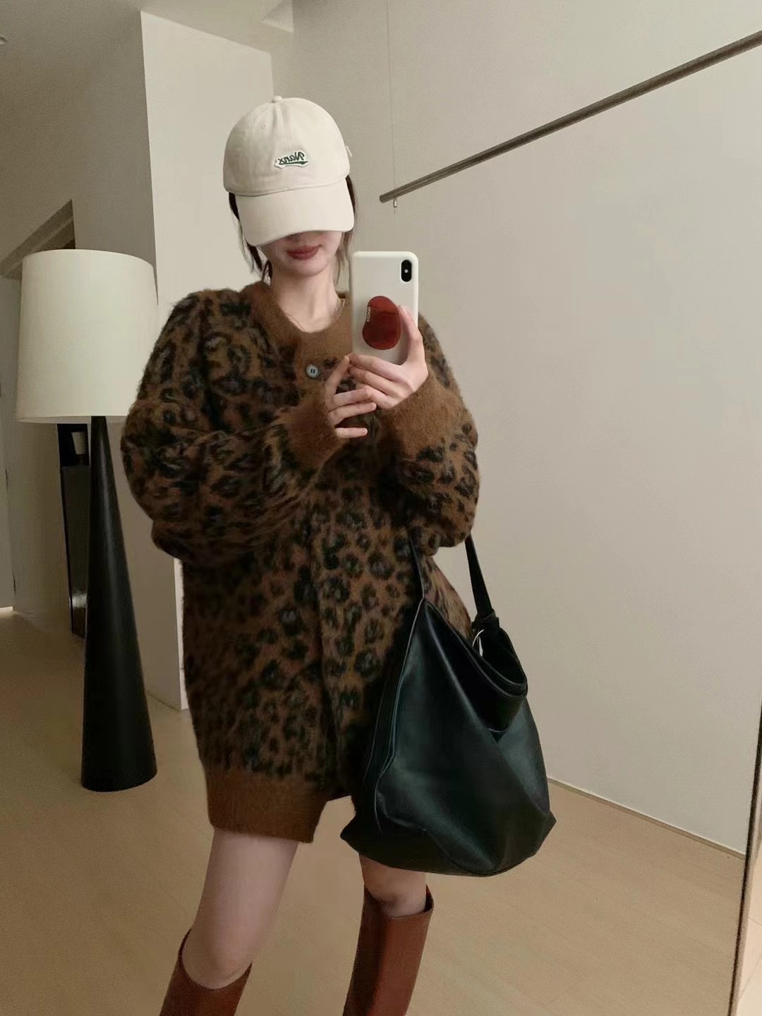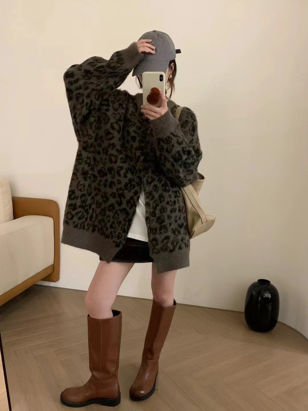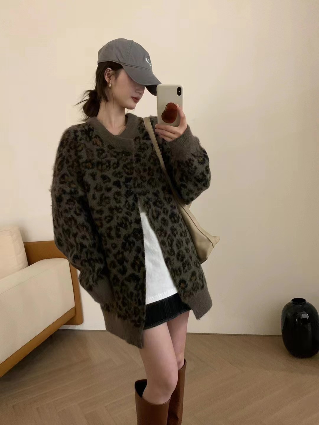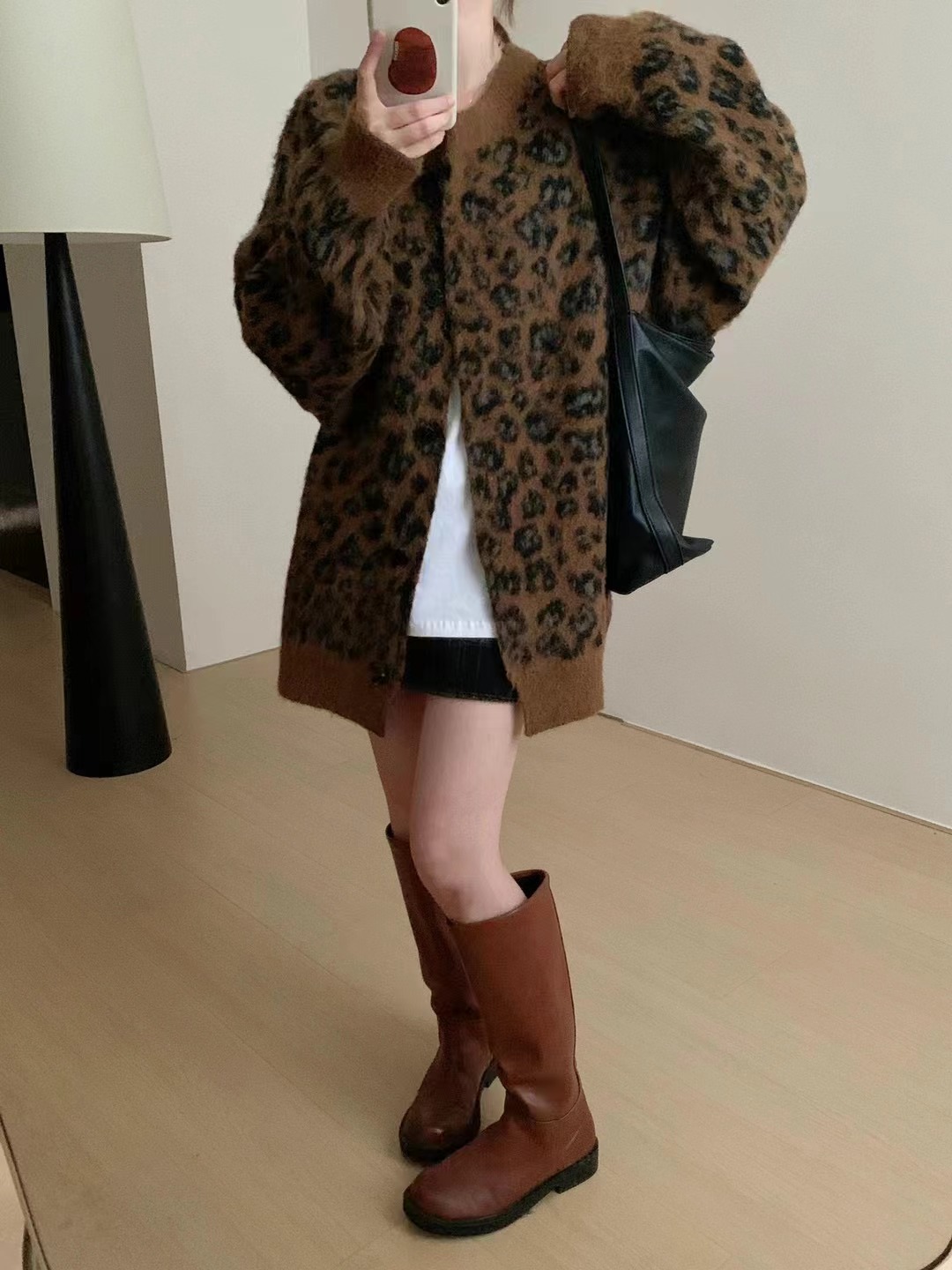 Leopard-print Sweater Coat for Women a Knitted Top with Elegant and Youthful Style
