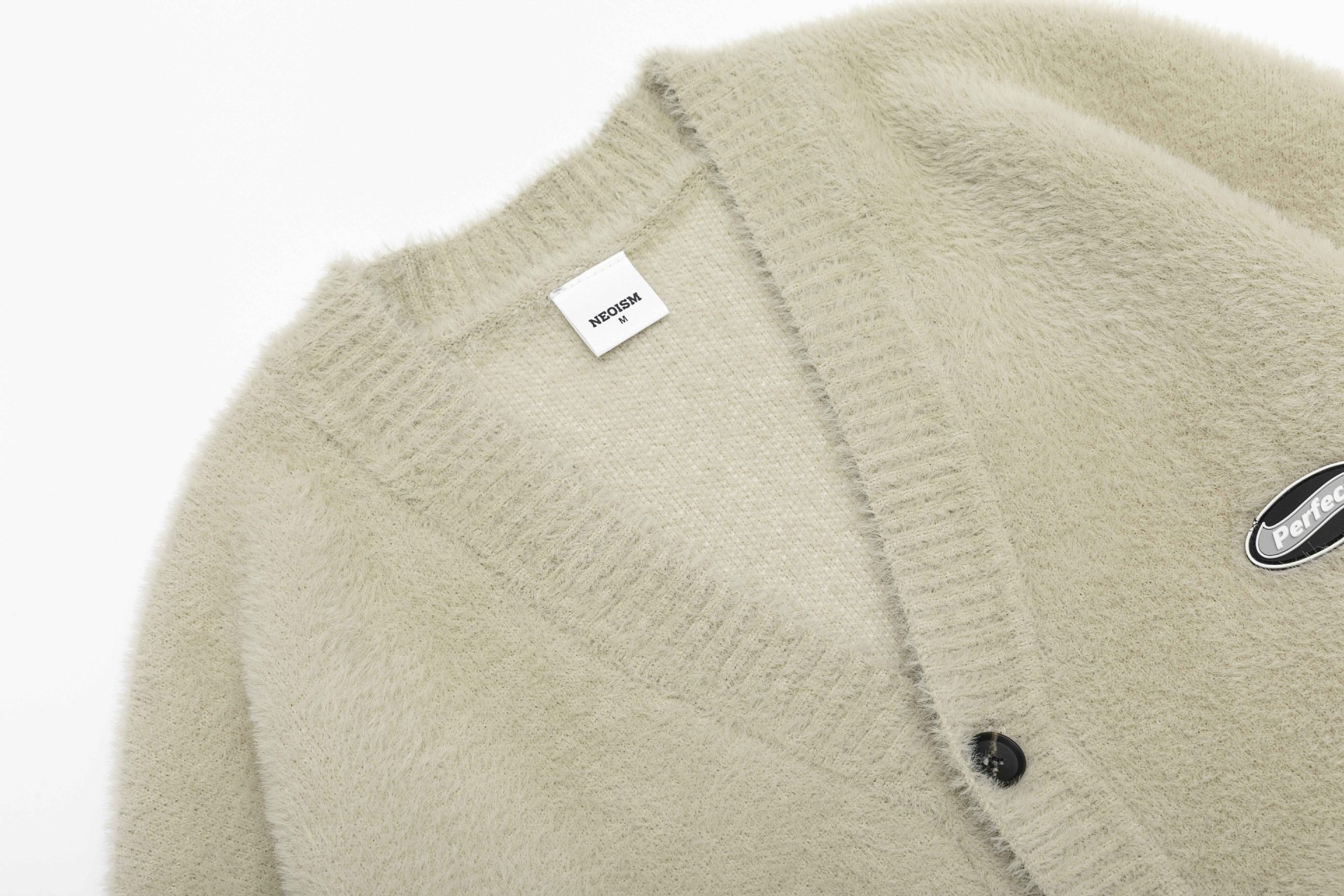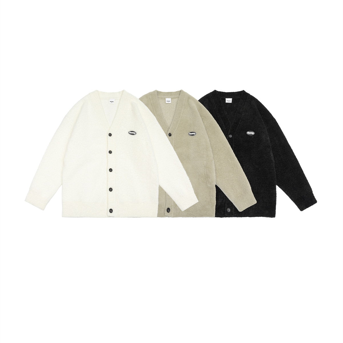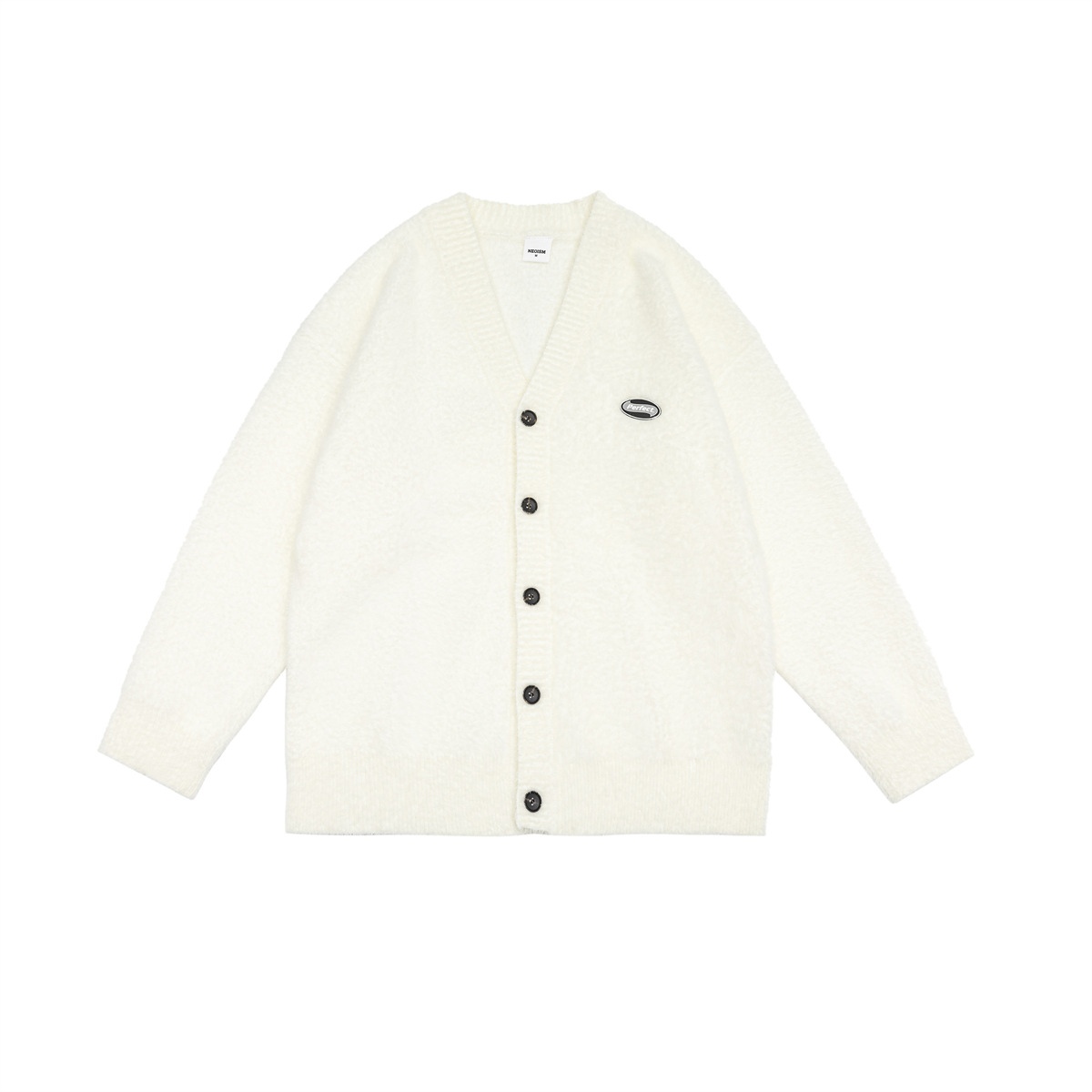 V-Neck Embroidered Label Loose Knit Cardigan Sweater Coat